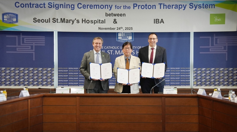 서울성모병원은 "11월 24일 병원 대회의실에서 글로벌 양성자 치료 솔루션 기업인 벨기에 IBA(Ion Beam Application)사와 차세대 양성자 치료 시스템 'IBA Proteus Plus' 도입을 위한 본계약을 체결했다"고 25일 밝혔다.