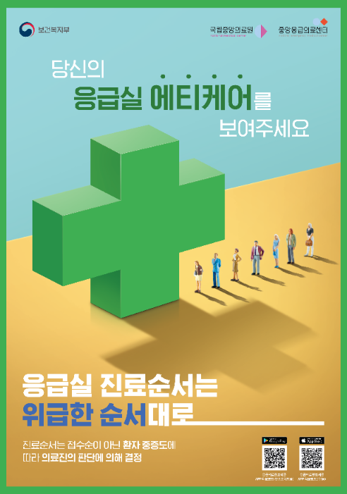이달 10일부터는 전국 응급의료기관에 ‘응급실 이용문화 수칙’ 포스터를 배포하고 응급실 근무자를 대상으로 ‘나의 일터, 응급실 이야기’ 공모전을 연다.