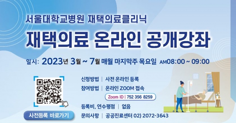 서울대학교병원 재택의료클리닉은 3월부터 7월까지 매월 마지막 주 목요일마다 온라인 공개강좌를 개최한다.