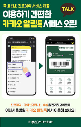 20일 이대서울병원에 따르면 홈페이지 및 웹 회원가입 절차 없이 발송된 알림톡을 통해 진료예약과 변경 및 취소가 가능해 졌다.