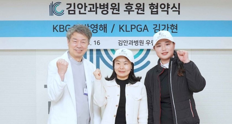 건양의료재단 김안과병원(원장 김철구)은 지난 16일 병원 우림홀에서 대한시각장애인골프협회(KBGA) 박영해 선수, 한국여자프로골프(KLPGA) 김가현 선수와 후원 협약식을 가졌다.