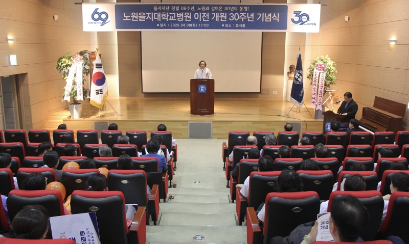 노원을지대학교병원(병원장 유탁근)은 지난 8일 병원 강당에서 이전 개원 30주년 기념식을 열고 앞으로 을지재단 역사를 이어가기 위한 각오를 다졌다.