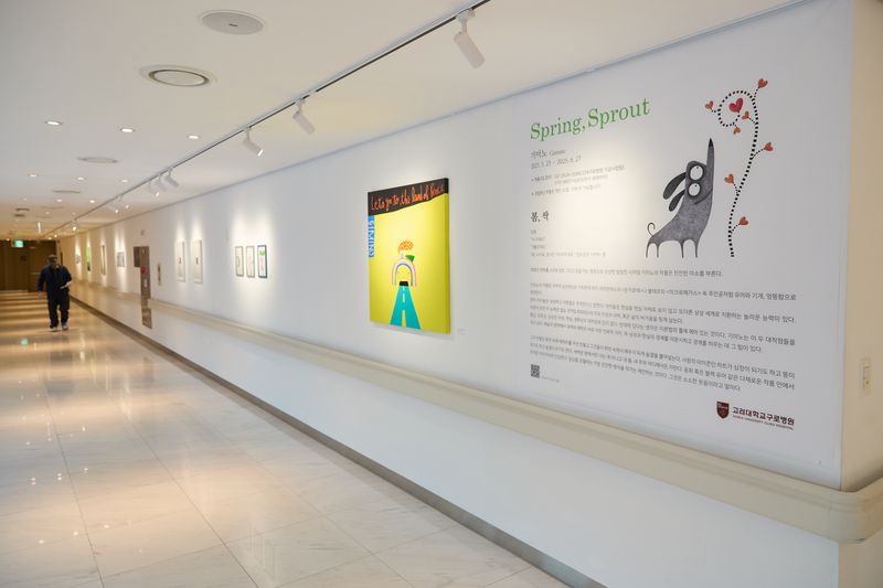 구로병원은 기미노 작가의 개인전 '봄,싹'을 통해, 계절의 변화를 소리와 말로 그리고 문을 여는 행동으로 상상한 발랄한 시처럼 느낄 수 있도록 작품을 구성했다.