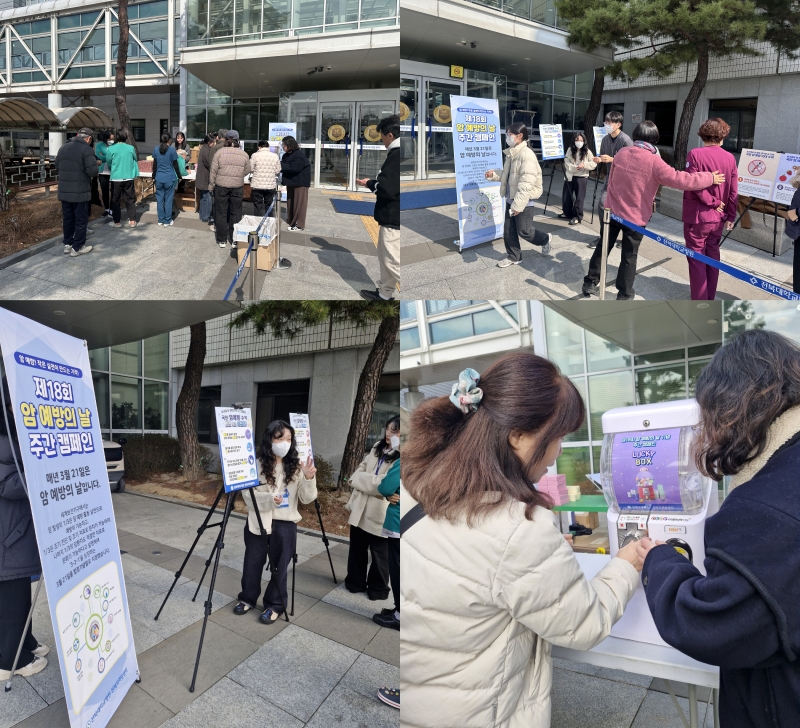 병원 암센터 앞에 준비된 홍보 부스에서는 환자와 보호자를 포함한 내원객이 참여할 수 있는 국민 암예방 수칙 빈칸 퀴즈 이벤트가 열렸다.