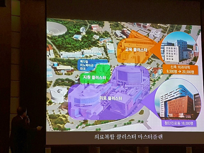 윤도흠 의료원장은 진료공간인 의료클러스터와 의대 등 교육클러스터, 그리고 행정 등 지원클러스터 3가지로 구분하는 ‘의료복합 클러스터 마스트플랜’도 공개했다.
