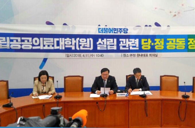 더불어민주당 정책위원회(의장 김태년)와 보건복지부(장관 박능후)는 11일 오전 국회에서 ‘국립공공의료대학(원) 설립 추진 계획’에 대해 당정협의 결과를 공동 발표했다.