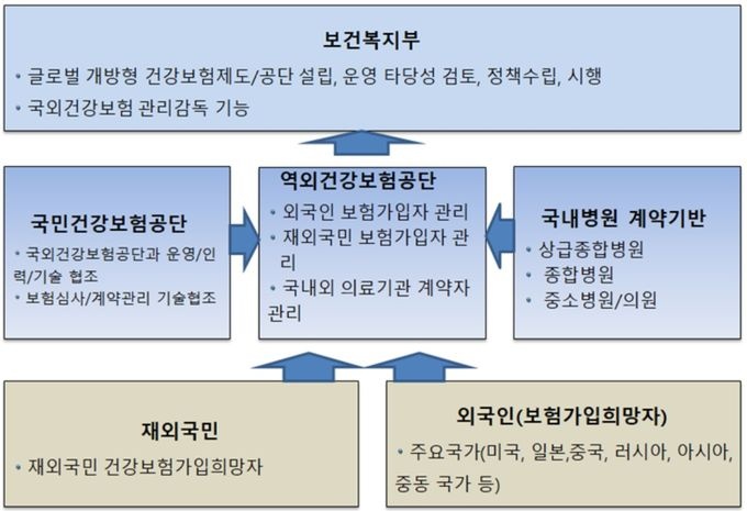 재외국민 750만명과 미국, 일본, 동남아시아, 중동 지역 외국인이 한국 건강보험에 가입하는 개방형 건강보험제도를 도입하는 게 핵심이다.