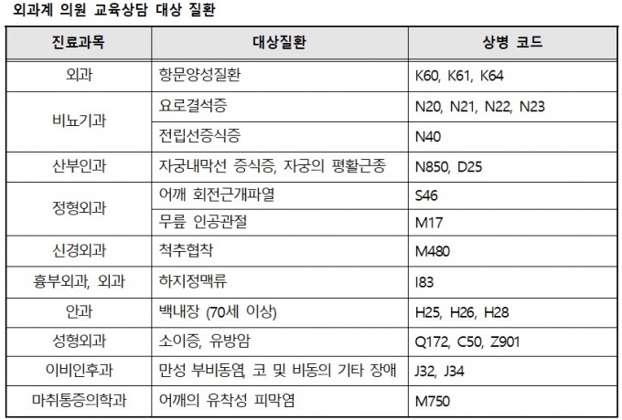 현행 교육상담료는 중증질환과 당뇨병, 고혈압 등 만성질환 중심으로 병원급 위주로만 인정하고 있는데, 의원급 의료기관에서도 교육상담을 실시해 환자의 자가관리 역량강화를 위한 기반을 마련하겠다는 취지다.