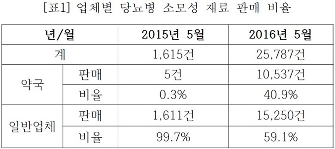 이로 말미암아 약국과 일반업체 간 당뇨병 소모성 재료 판매 비율은 급속히 줄어들었다.