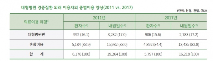 심평원은 “혼합이용자 비중이 높게 나타나는 것은 병의원에서 1회라도 경증질환 외래로 내원했을 경우 혼합이용자로 분류되기 때문일 수 있다”고 언급했다.