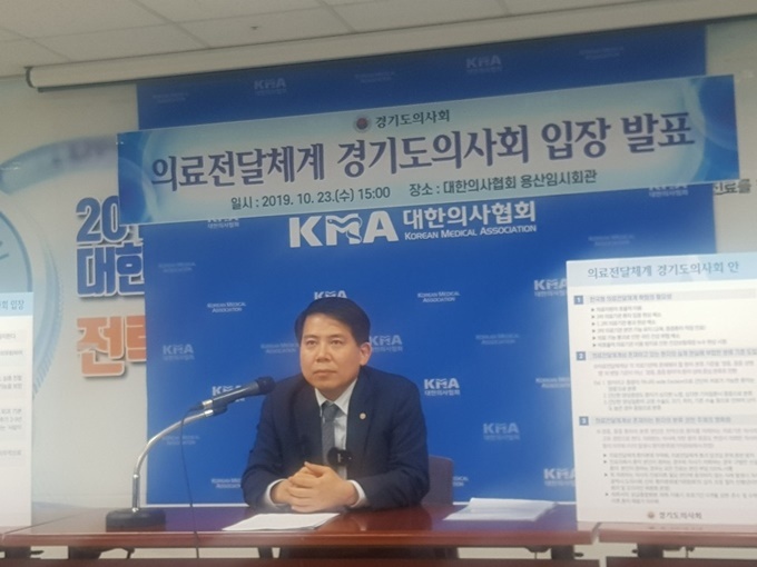 이동욱 경기도의사회 회장은 23일 대한의사협회에서 기자회견을 열고 이 같은 내용이 포함된 의료전달체계 ‘경기도안’을 발표했다.