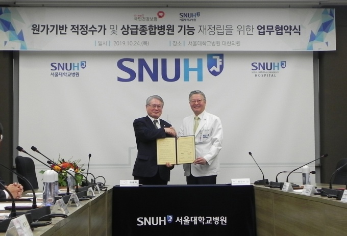 [데일리메디 박근빈 기자] 서울대병원이 적정수가 확보 및 상급종합병원 기능 재정립을 위해 국민건강보험공단과 진료비 원가자료 공유를 결정했다. 이를 계기로 다양한 제도적 변화의 근간이 만들어질지 관심을 모은다.