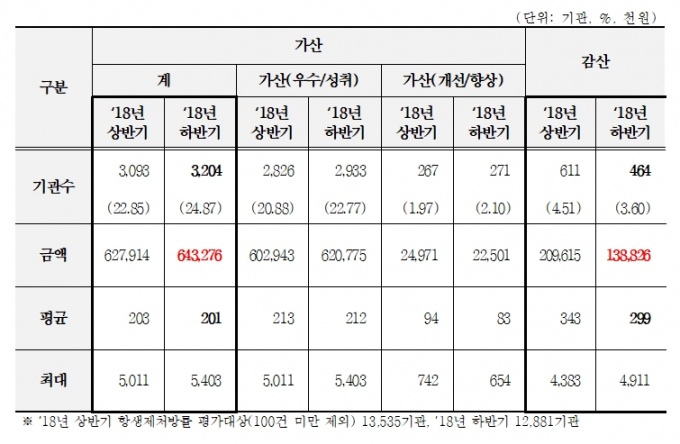 감산기관은 464곳으로 전체 기관의 3.6%에 불과했고 디스인센티브 금액은 1억3800만원이었다.