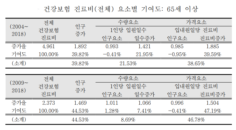 그 결과, 고령화와 가격 요인이 노인 의료비 증가를 주도했음이 분석된 것이다.