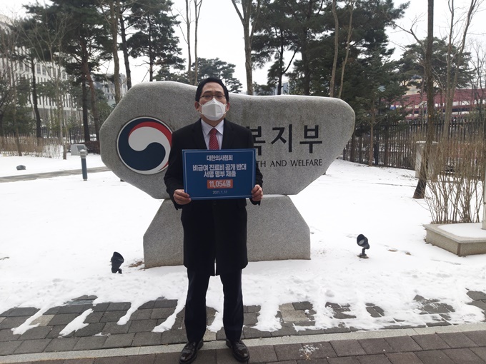 이에 의협은 구랍 31일부터 신년 1월 11일까지 온라인 서명운동을 진행하고, 이를 통해 모아진 1만 1054장을 보건복지부에 전달한 것이다.