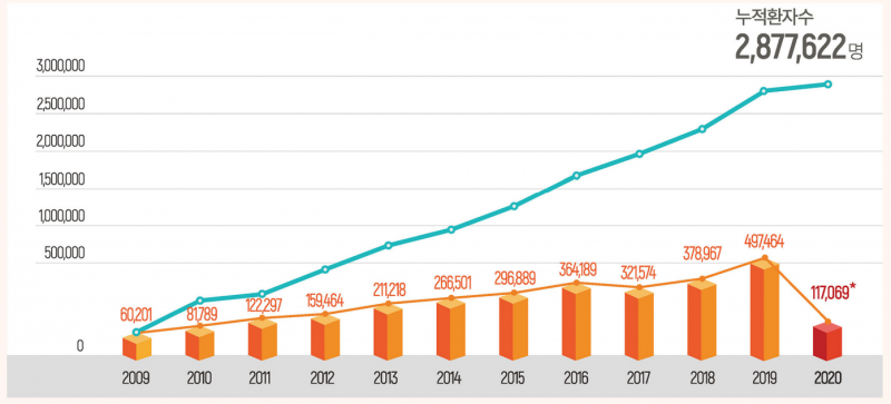 실제로 그 전까지 외국인 환자 수는 꾸준한 증가세를 보이며 2019년에는 역대 최고치를 기록하기도 했지만 지난해에는 코로나19의 여파를 피하기 어려웠다.
