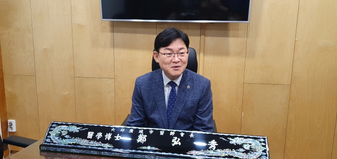[데일리메디 임수민 기자] 지난 3월 대구광역시의사회장에 정홍수 회장이 취임하고 반년가량이 지났다. 수술실 CCTV 의무설치와 의료인면허관리법 등 의료계를 옥죄이는 각종 법안들이 줄줄이 신설되는 난국(亂局)에 정 회장은 국회 및 국민과의 소통을 강조하며 공감대를 높이는 것이 우선이라고 강조했다. 이를 위해 대구시의사회는 최근 시민단체와 언론사, 의대생 등이 참여한 의료정책 추진 공청회를 개최했고, 유튜브 채널을 개설해 다양한 영상을 게재하고 있다. 또한 얼마 남지 않은 차기 대선에서 정치적 영향력을 확대하기 위해 대선기획본부를 구성하고 회원들에게 정당 가입을 독려하는 등 다양한 활동을 펼치고 있다. 대한의사협회 기자단이 최근 정홍수 회장 이야기를 들어봤다. [편집자주]