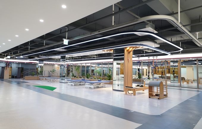 26종 30대의 최고급 헬스장비와 체지방분석기, 슬관절 엘리트 전동 운동기가 배치돼 있다. 의료와 피트니스를 절묘하게 녹여냈다.