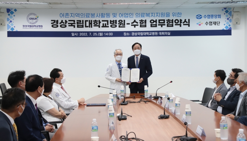 경상국립대학교병원(병원장 윤철호)은 25일 수협재단(이사장 임준택 수협중앙회장)과 ‘어업인 의료복지 지원을 통한 어촌지역사회 유지 발전과 어업인 삶의 질 향상’ 업무협약을 체결했다.