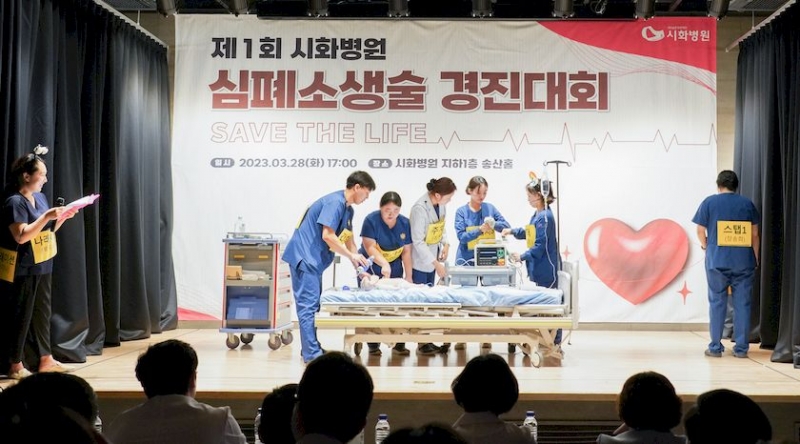 시화병원(이사장 최병철)은 지난 28일 본관 지하 송산홀에서 ‘제1회 심폐소생술 경진대회’를 개최했다.