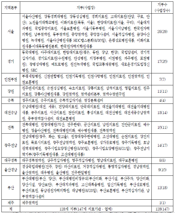 사립대병원은 강동경희대병원, 강동성심병원, 건양대의료원, 경희의료원, 고대의료원, 고신대복음병원, 노원을지대병원, 단국대의료원, 동국대의료원, 서울아산병원, 이화의료원, 아주대의료원, 원주연세의료원, 원광대병원, 조선대병원, 한림대의료원, 한양대의료원 등이 포함됐다.