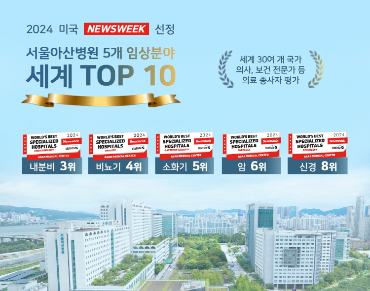 한편, 뉴스위크는 글로벌 조사 기관인 스타티스타와 함께 세계 30여 개 국가의 의료 종사자들을 대상으로 ‘2024 임상분야별 세계 최고 병원’에 대한 온라인 설문을 지난 6월부터 두 달간 실시하고 그 결과를 최근 발표했다.