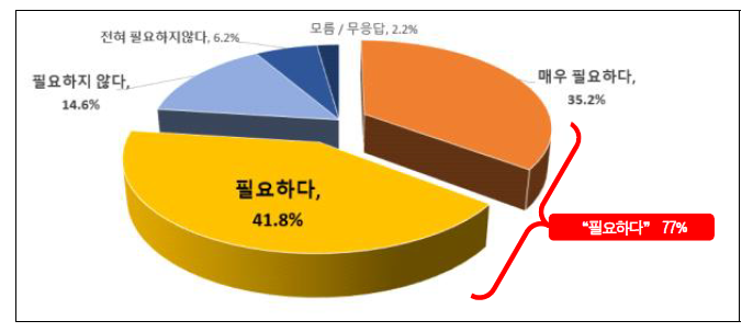 응답자의 77%가 '국립대가 없는 지역에 공공의대 및 특수목적 의대가 새로 생겨야 한다'는 데 동의했다.