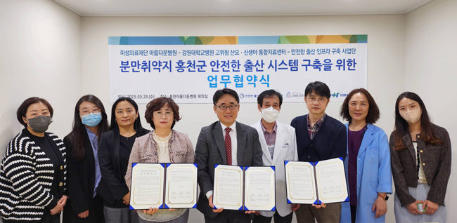 아름다운병원과 강원대병원이 지난 3월 29일 홍천군 안전한 출산 시스템 구축을 위한 업무협약을 체결했다.