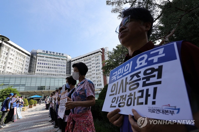 이어 방재승 서울의대 비대위 투쟁위원장은 대정부 요구안을 발표하며 "전공의에 대한 행정처분을 완전히 취소해달라. 전공의들은 자기 직업에 대한 자유권을 가질 자유가 있다"라며 "현장 의견을 반영할 수 있는 상설 의정협의체를 만들어달라"고 요구했다.
