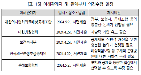 손해보험협회 측은 "의료기관 개설자의 담보 필요성에 공감하지만, 민간보험은 선택사항으로, 공제상품은 의무사항으로 받아들여질 여지가 있다"며 "두 상품을 동등한 조건 하에 선택할 수 있도록 해야 한다"고 피력했다.