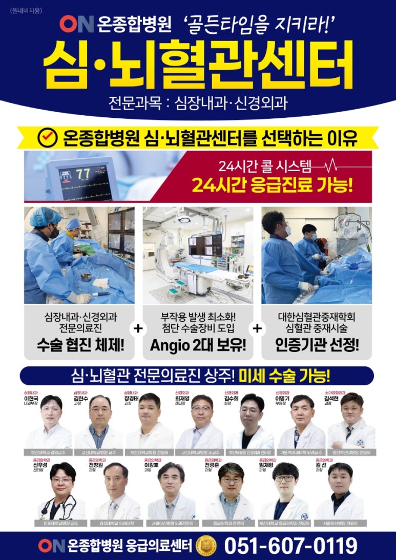 부산 온종합병원(병원장 김동헌)은 “추석연휴 기간에 심뇌혈관 질환 전문의들이 24시간 콜 대기한다 5 .