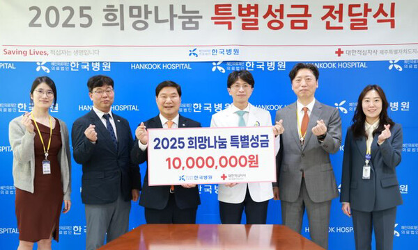 제주한국병원에 따르면 지난 26일 한 병원장 등은 보령의료봉사상 상금 500만원을 포함 총 1000만원을 대한적십자사 제주도지사에게 전달했다.