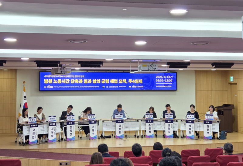 이번 토론회는 더불어민주당 이학영·박주민·김주영·이수진·김남희·김윤·박해철·박홍배·이용우 의원이 주최하고 세브란스병원 노동조합, 주 4일제 네트워크가 주관했다.