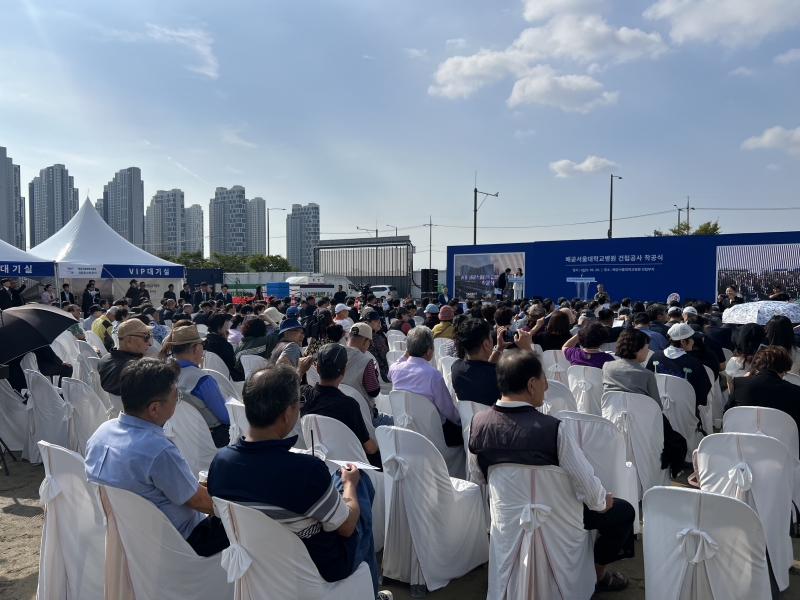 서울대병원은 이날 배곧서울대병원 부지에서 착공식을 열고 본격적인 사업 추진에 나섰다. 배곧서울대병원은 지하 1층, 지상 12층, 연면적 11만1492㎡ 규모로 800병상을 운영할 예정이다.