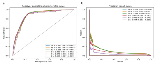 해당 모델에서 인공지능 예측 성능를 평가하는 AUROC 값은 0.881 이었다. AUROC는 실제 발생과 미발생을 정확히 예측하는 능력을 모두 반영하는 지표로 1에 가까울수록 성능이 우수하다고 본다.