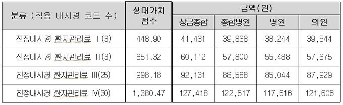 이로써 환자가 부담하는 비용은 4대 중증 대장내시경의 경우 현재 평균 6만1000원~10만3000원에서 4만3000원~4만7000원으로 감소한다. 4대 중증질환 위내시경은 약 3000원만 부담하면 된다.