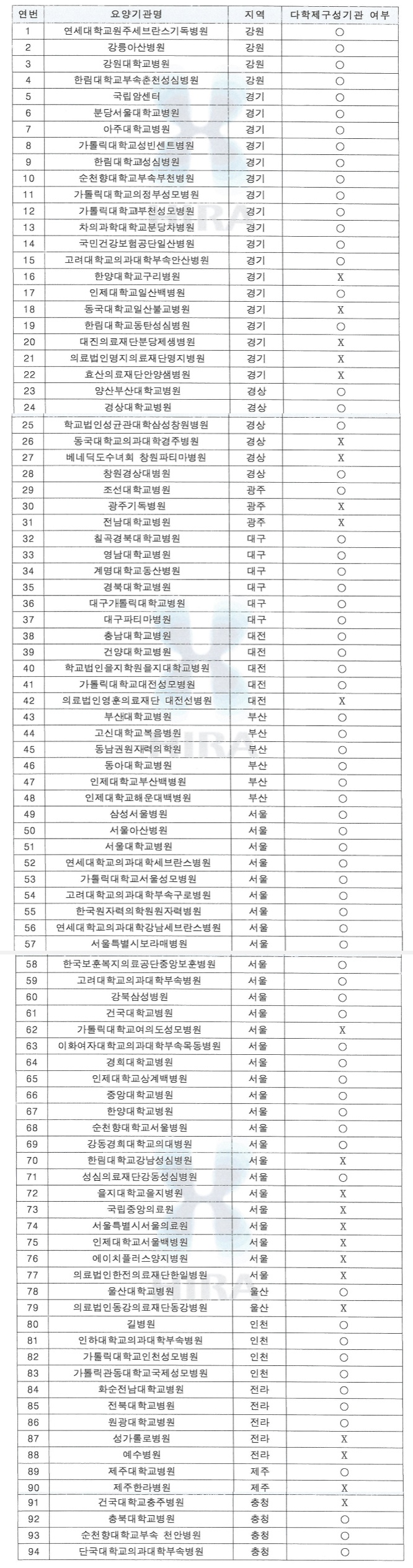 A. 면역관문억제제 급여 인정 기관은 94개소이며 다학제적 위원회 구성기관은 71개소이다. [아래표 참조]