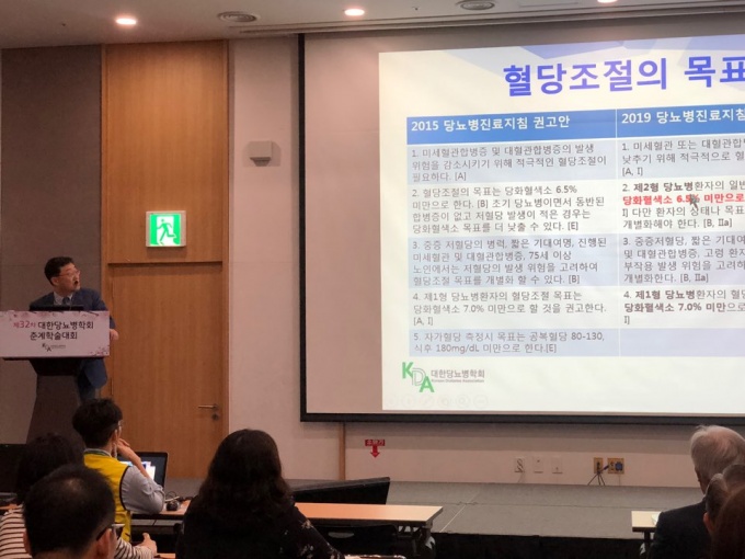 김대중 아주의대 내분비내과 교수는 "당뇨는 적어도 6.5%를 목표혈당으로 설정해야 한다고 본다"며 "NICE 가이드라인 등 비롯해 많은 연구 결과들을 종합해보면 최소한 당뇨병 신환, 혹은 진단을 받은지 얼마되지 않은 환자, 발병 기간이 10~15년 미만인 환자에게는 적극적인 혈당 조절이 필요하다"고 설명했다.
