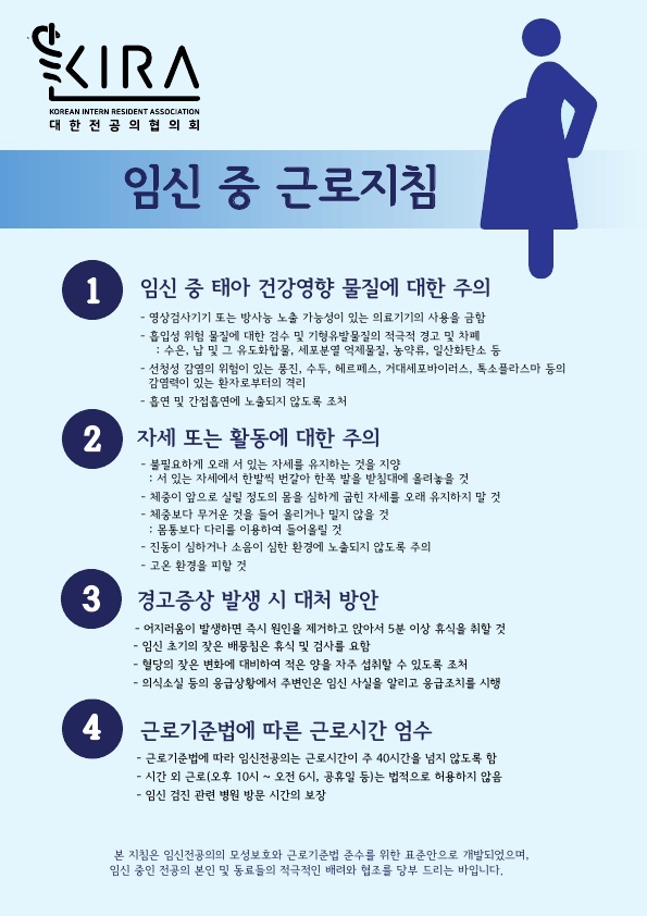 대한전공의협의회 이승우 회장도 “임신 전공의들 요구 사항은 CPR 혹은 수술 중 유산, 방사능 유출, 감염 등의 피해를 막는 것”이라며 “수련시간 감축보다 이 같은 피해를 막는 안전 가이드라인이 필요하다”고 강조했다.