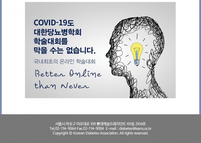 [데일리메디 백성주 기자] 코로나19(COVID-19) 사태가 이어지면서 국내외 학술행사가 모두 취소되고 있는 가운데 대한당뇨병학회가 온라인을 통해 학술대회를 개최한다.