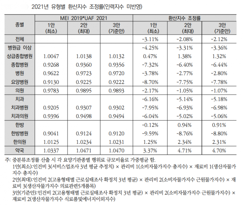 건보공단은 최근 한국보건사회연구원에 위탁해 진행한 2021년도 유형별 환산지수 연구 결과를 발표했다.