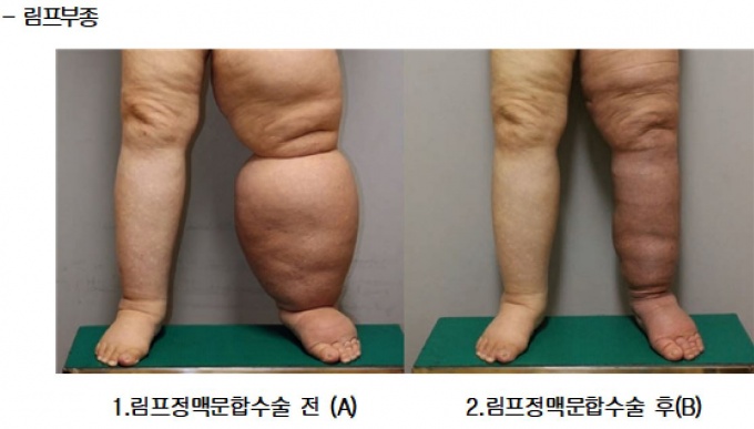 한 쪽 다리에만 림프부종이 있는 환자 34명 중 림프정맥문합술 후 림프부종의 부피가 정상측과 비교했을 때 10-20% 범위로 초과된 환자가 16명, 10% 미만 초과 환자 11명으로 확인됐다. 수술 후 약 80%의 환자에서 림프부종의 부피가 크게 감소해 중증 림프부종 환자에서도 치료 효과를 입증했다고 설명했다.