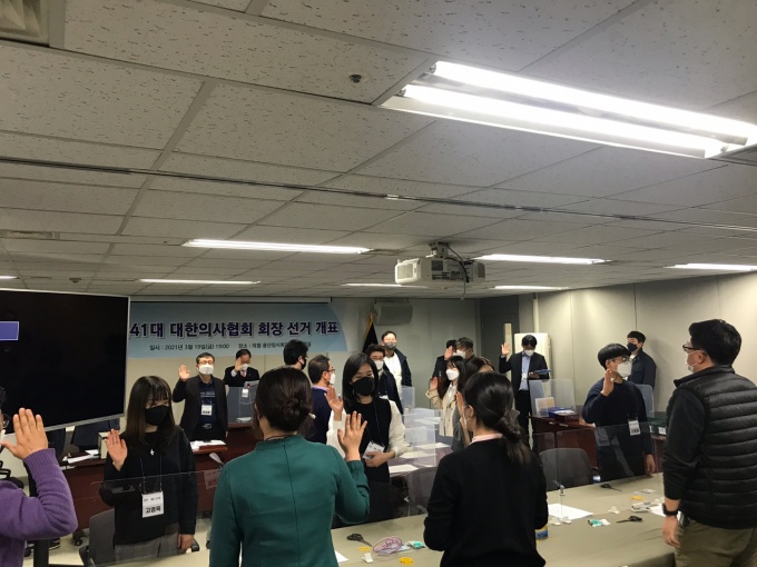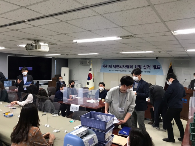 제41대 대한의사협회 회장선거 개표가 3월 19일 저녁 7시 대한의사협회 용산임시사무소 7층에서 열렸다.