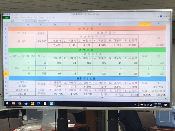 이날 개표는 7시 전자투표 결과 공개를 시작으로 우편투표 개표 순서로 진행됐다. 대한의사협회 유튜브로도 생중계 됐다.