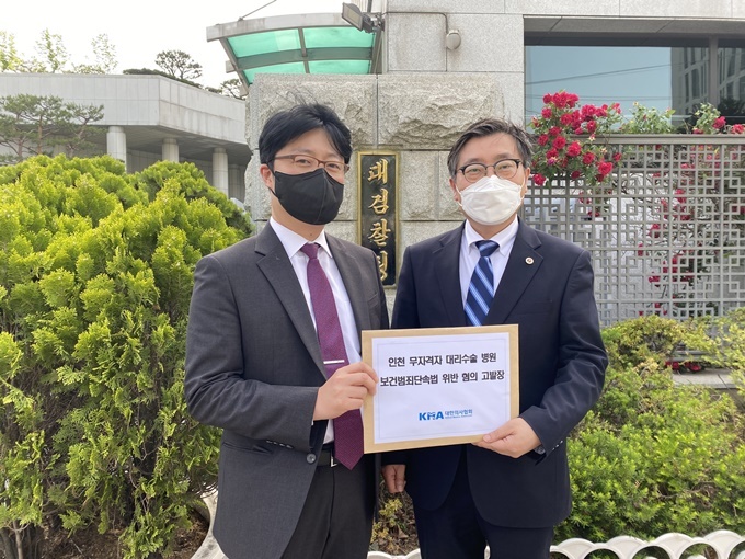 의협에 따르면 인천 척추전문병원 대표 원장과 관계자들은 의사가 아닌 사람이 의료행위를 하는 등 보건범죄 단속에 관한 특별조치법 위반 혐의를 받고 있다.