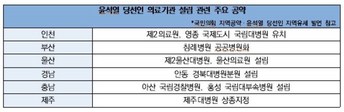 25일 병원계에 따르면 윤 당선인은 앞서 지역 유세과정에서 의료기관 설립 공약을 다수 발표했다.