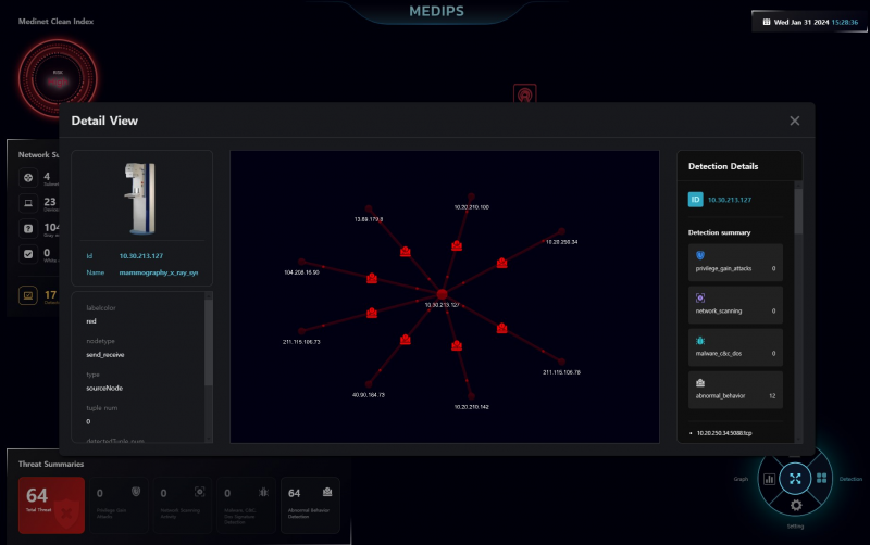 이 특허는 건국대병원 의공학팀과 한국전자통신연구원(ETRI) 협력해 개발한 ‘의료기기 네트워크 랜섬웨어 탐지 기술(MedIPS, Medical device Intusion Prevension System)’을 적용했다.