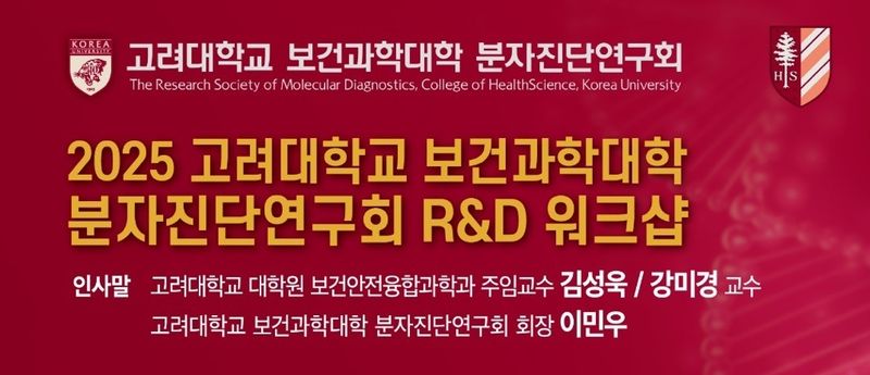 고려대학교 대학원 보건안전융합과학과(주임교수 김성욱)와 고려대 보건과학대학 분자진단연구회(회장 이민우)는 오는 21일 ‘2025년 R&D 연구중심 워크숍’을 개최한다.
