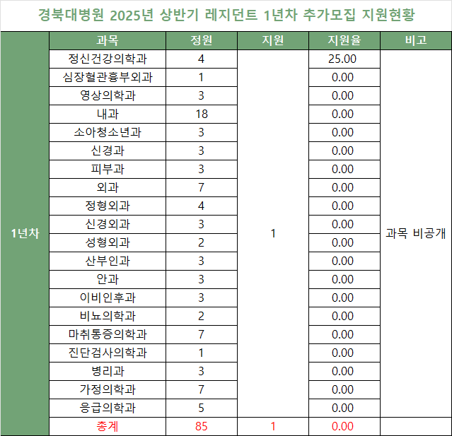 [2025년 레지던트 추가모집 지원현황] 경북대병원