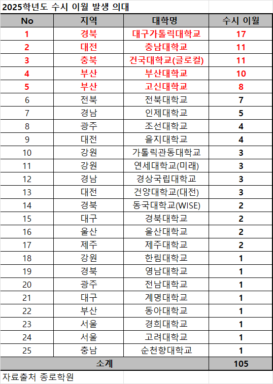한편, 이 같이 수시 전형으로 등록하지 않아 발생한 105명에게 정시로 의대에 지원할 기회를 주지 말자고까지 제안했던 일부 의료계 입장에서는 답답한 입장이다.